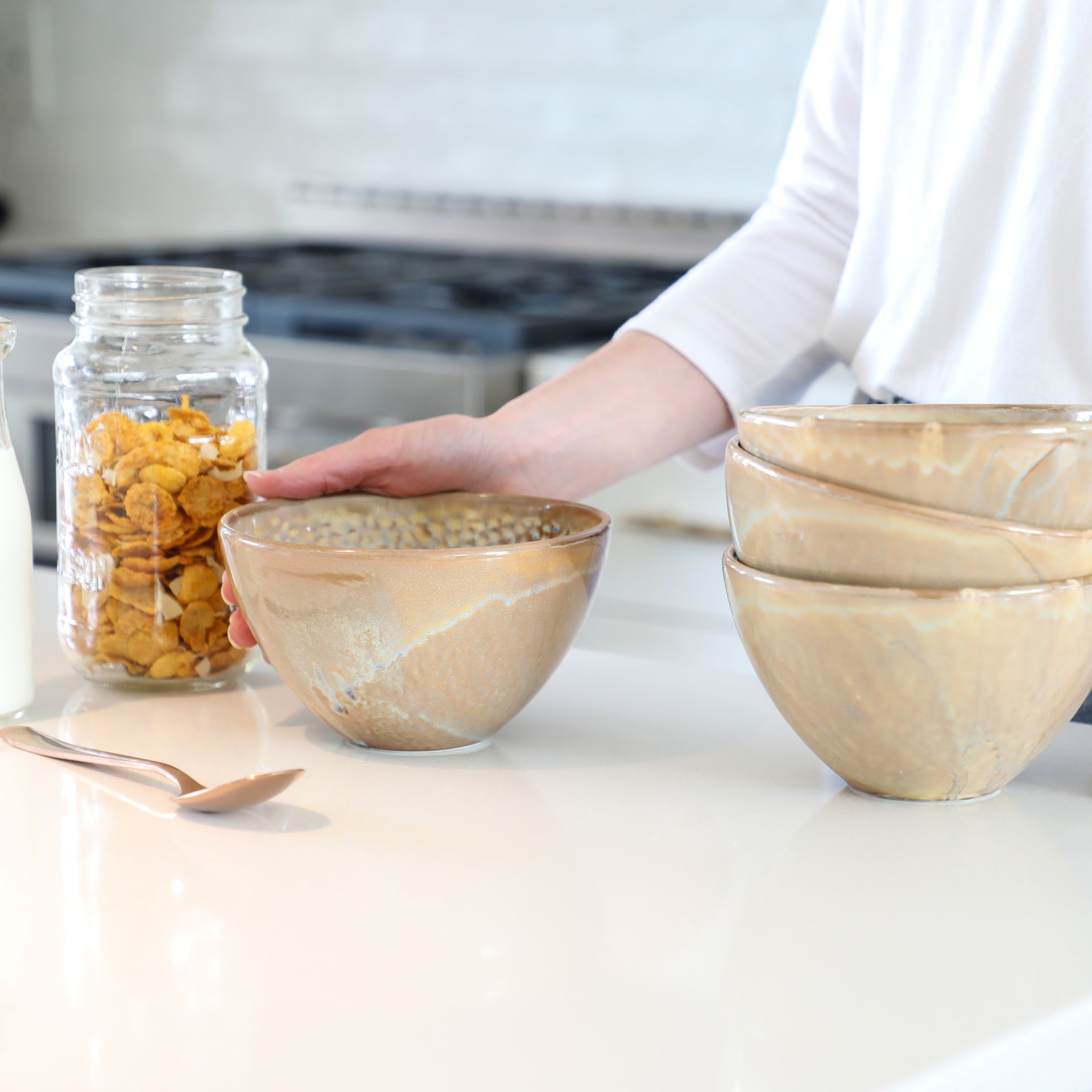 Our Pearl cereal bowl has a truly unique interior with a beautiful scale pattern!  You can expect a beautiful mixing of beiges and browns with subtle hues of blue.